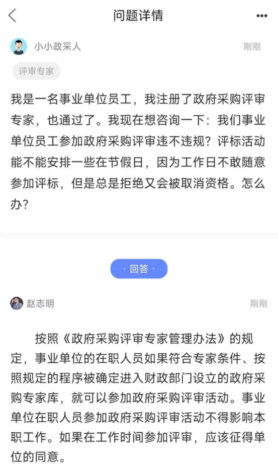 我是一名事业单位员工,我注册了政府采购评审专家,也通过了。我现在想咨询一下:我们事业单位员工参加政府采购评审违不违规?评标活动能不能安排一些在节假日,因为工作日不敢随意参加评标,但是总是拒绝又会被取消资格。怎么办?