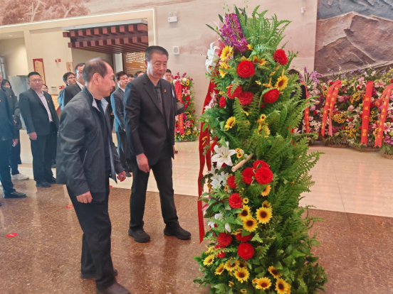上午8时45分,全体党员身着正装、佩戴党徽,提前在纪念馆门前集合,整齐列队完成集体合影。随后,在庄严肃穆的氛围中,活动正式开始。全体党员向孔繁森同志塑像敬献花篮,深深三鞠躬,表达对英烈的崇高敬意与深切追思。